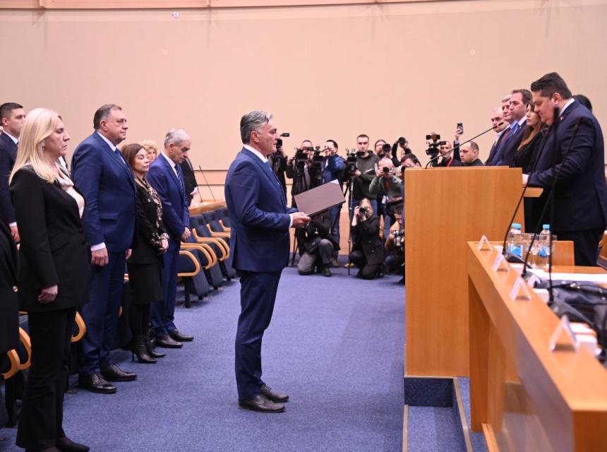 Предсједник Републике Српске пред Народном скупштином је прочитао текст заклетве: „Заклињем се да ћу дужност савјесно и одговорно извршавати, државне тајне чувати, интересе народа и грађана Републике Српске бранити и заступати, Устава и закона Босне и Херцеговине и Републике Српске часно се држати“.