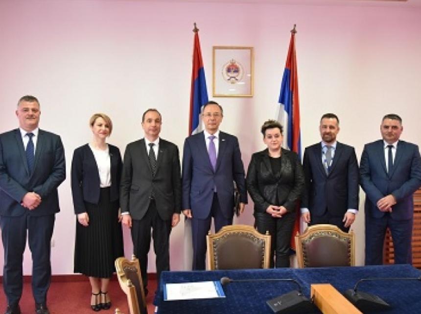 На састанку, којем су присуствовали шеф Канцеларије ОЕБС-а у Бањалуци Дмитри Jорданиди, предсједник Савеза националних мањина Републике Српске Фрањо Ровер и потпредсједавајућа Вијећа народа Републике Српске из реда осталих народа Александра Далшашо Лепир, разговарано је о унапређењу институционалног и законодавног оквира заштите права и очувању културног идентитета припадника националних мањина у Републици Српској.
