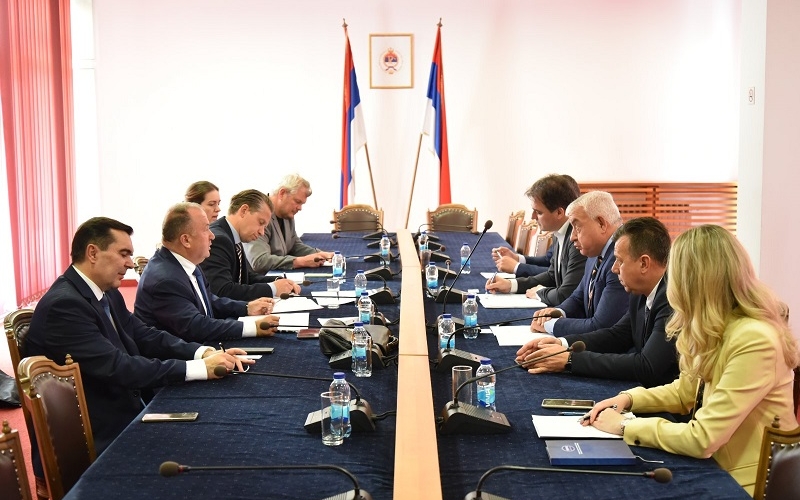 The President of the Committee on Security of the National Assembly of the Republic of Srpska Vukota Govedarica and the members of the Committee Milanko Mihajlica, Milan Dakic and Dragan Galic met today in the parliament with the Director of the Centre for European Studies from the Kingdom of Holland Merijn Hartog with whom they talked on the improvement of the democratic and parliamentary oversight of the security sector.