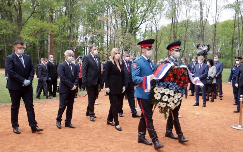 Najviši zvaničnici Republike Srpske i predstavnici diplomatskog kora u BiH položili su vijence i cvijeće na grobno mjesto „Topole“ u Spomen-kompleksu Donja Gradina.