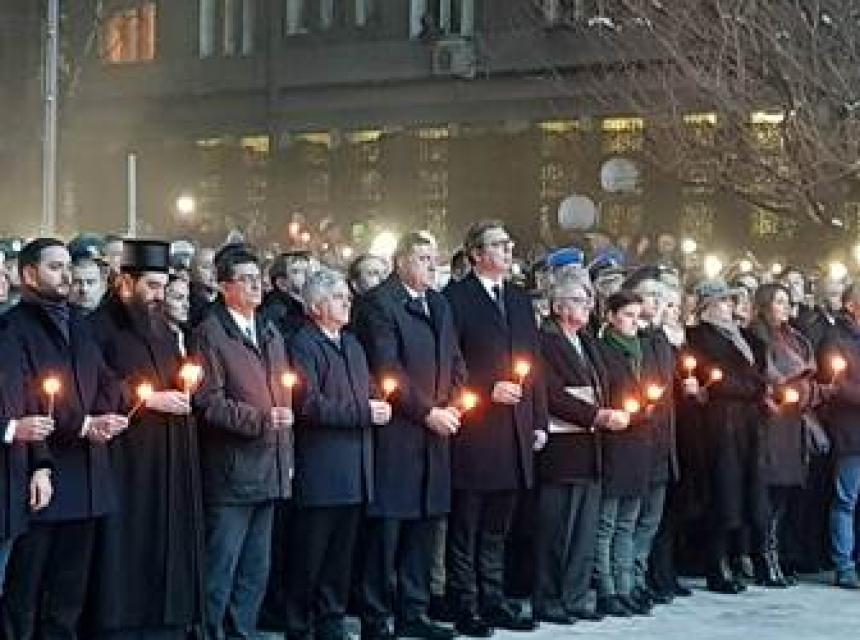 Na početku ceremonije pod naslovom "Oprostićemo, ako budemo mogli, zaboraviti, samo ako nas ne bude bilo", hor RTS-a je pod vođstvom dirigenta Bojana Suđića otpjevao "Tebe pojem" Stevana Mokranjca, a okupljeni su držali svijeće u rukama.