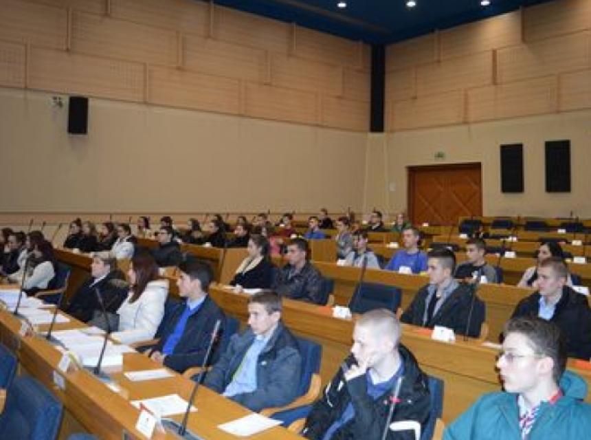 Učenici Ekonomske škole Srednjoškolskog centra "Gemit - Aperion" iz Banjaluke posjetili su danas Narodnu skupštinu Republike Srpske, u okviru novopokrenutog programa "Dani otvorenih vrata", kreiranog s ciljem jačanja transparentnosti rada parlamenta.