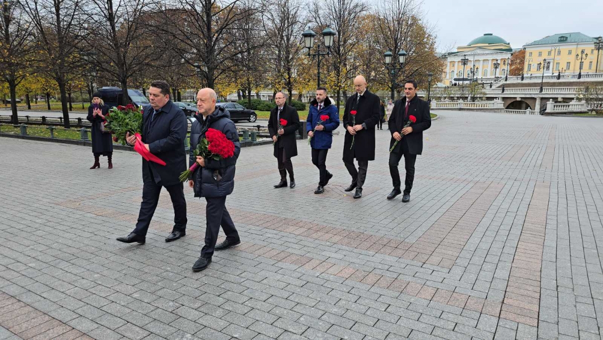 Delegacija Narodne skupštine Republike Srpske, sa predsjednikom dr Nenadom Stevandićem na čelu, položila cvijeće na Grob neznanog junaka kod Kremaljskog zida u Moskvi, 7.11.2024.