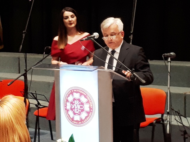 Свечана академија одржана је у амфитеатру Електротехничког факултета Универзитета у Источном Сарајеву.