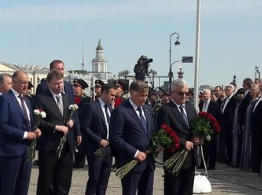Цвијеће су положили и предсједница Горњег дома парламента Руске Федерације Валентина Матвијенко, изасланици предсједника Руске Федерације Владимира Путина и губернатор Санкт Петербурга Георгиј Полтавченко са којим је предсједник Чубриловић разговао о интензивирању сарадње између Санкт Петербурга и Републике Српске.