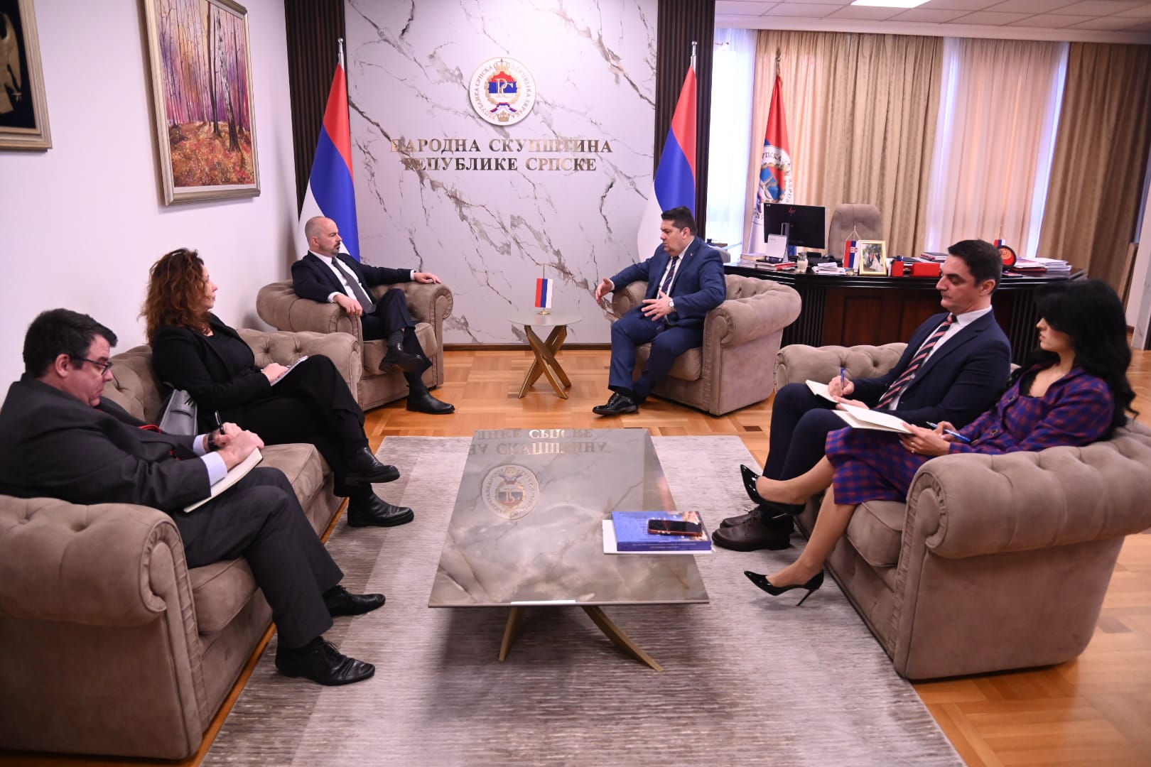 Предсједник Народне скупштине Републике Српске др Ненад Стевандић је разговарао данас у Бањалуци са отправником послова Амбасаде Сједињених Америчких Држава у Босни и Херцеговини Џоном Гинкелом о актуелној политичкој ситуацији у Републици Српској и БиХ.