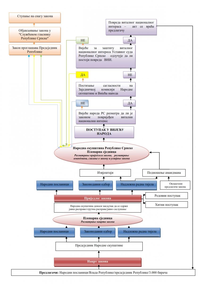 • Право предлагања закона, других прописа и општих аката имају предсједник Републике, Влада, сваки народни посланик или најмање 3.000 бирача.